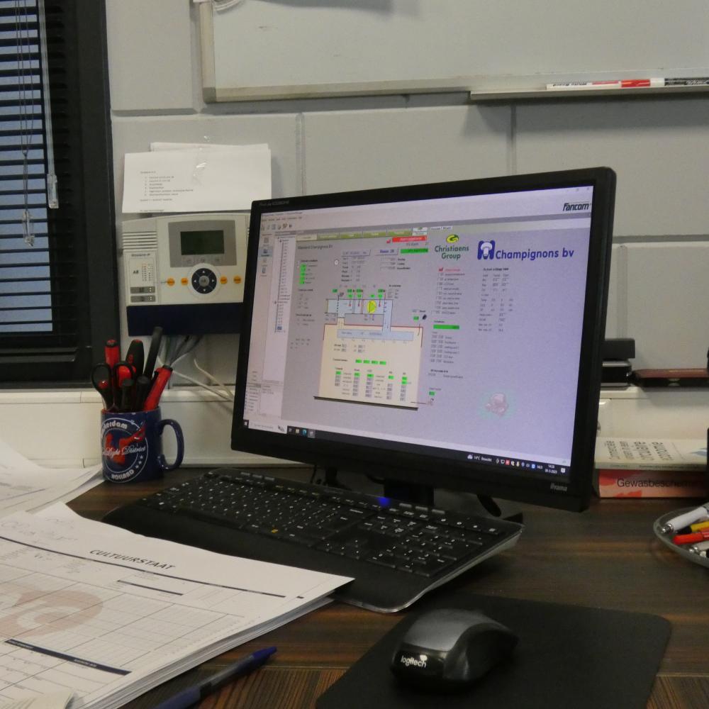 Les locaux et l'équipement ont été construits par le groupe Christiaens, qui propose également des ordinateurs pour champignons Fancom dans le cadre de ses solutions clés en main. Pieter van den Oord a sciemment choisi un ordinateur climatique Fancom pour ses cellules : "Les possibilités des ordinateurs climatiques Fancom sont vastes et flexibles, et Fancom était clairement à l'avant-garde dans ce domaine. Je veux aussi utiliser un ordinateur climatique pour ce pour quoi il a été conçu, à savoir contrôler le processus climatique de manière entièrement automatique. Dans ce cas, il n'est pas nécessaire de faire beaucoup de choses manuellement, ce qui est un gaspillage.